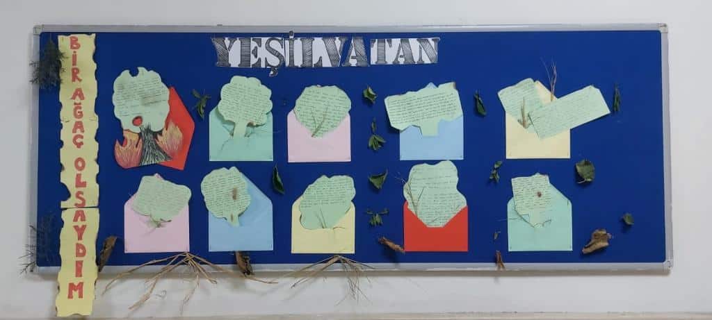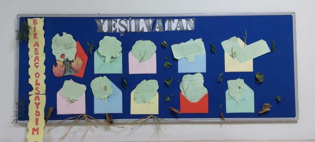 Okulumuzda bu kapsamda, 2025–2026 eğitim öğretim yılının ilk haftasında; doğa sevgisini pekiştirmek, çevreye karşı sorumluluk bilincini güçlendirmek ve Yeşil Vatan farkındalığını artırmak amacıyla BİR AĞAÇ OLSAYDIM başlığıyla yangınlar esnasında hissettiklerini dile getirdiler. Bu çalışmayı yapan İngilizce Öğretmenimiz Aslı hocamıza çok teşekkür ediyoruz.